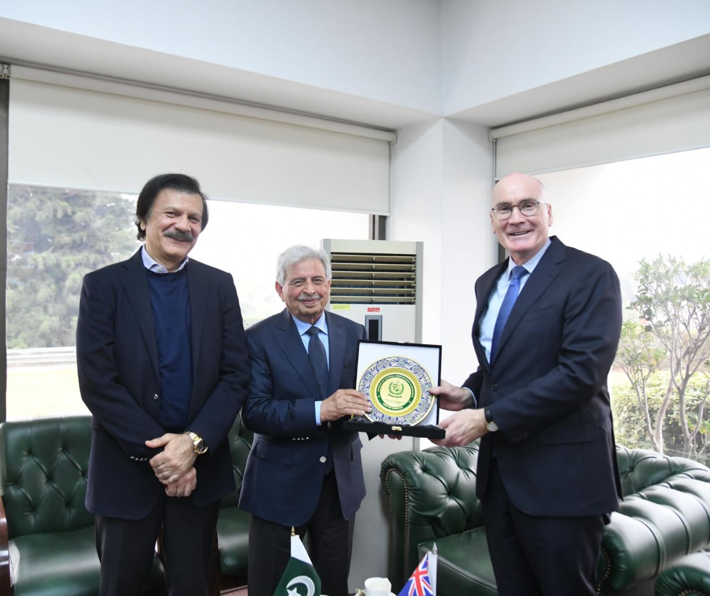 On the instructions of the Prime Minister of Pakistan, Federal Minister for National Food Security and Research Rana Tanveer Hussain chaired a high-level meeting with the Australian High Commissioner to Pakistan, H.E. Mr. Timothy Kane, to discuss ways to enhance cooperation in agriculture and livestock. The meeting was also attended by Special Assistant to the Prime Minister Haroon Akhtar, the Livestock Commissioner, and senior officials from relevant departments.