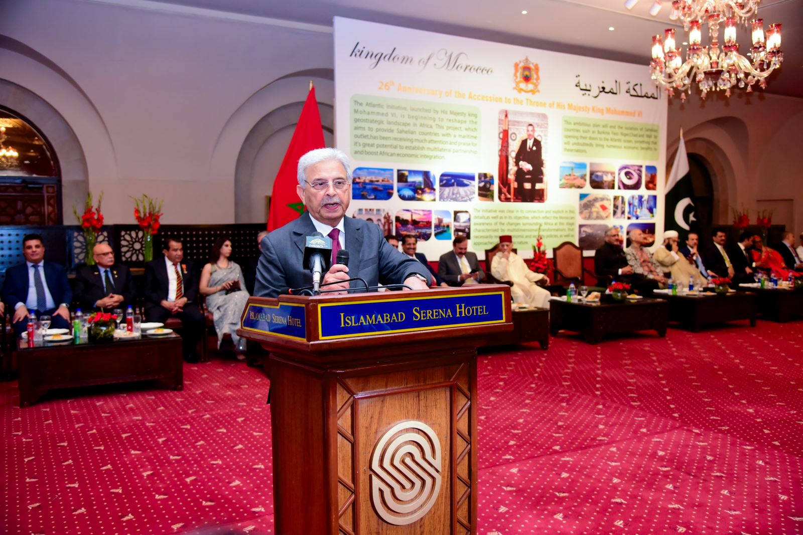 Addressing the distinguished gathering, the Minister extended warm greetings and heartfelt felicitations to His Majesty King Mohammed VI, the Government of Morocco, and the Moroccan people on behalf of the Government and people of Pakistan. He termed the National Day a symbol of Morocco’s rich heritage, national pride, resilience, and steady journey towards progress and peace. He commended Morocco’s remarkable strides in sustainable development, regional cooperation, and governance.