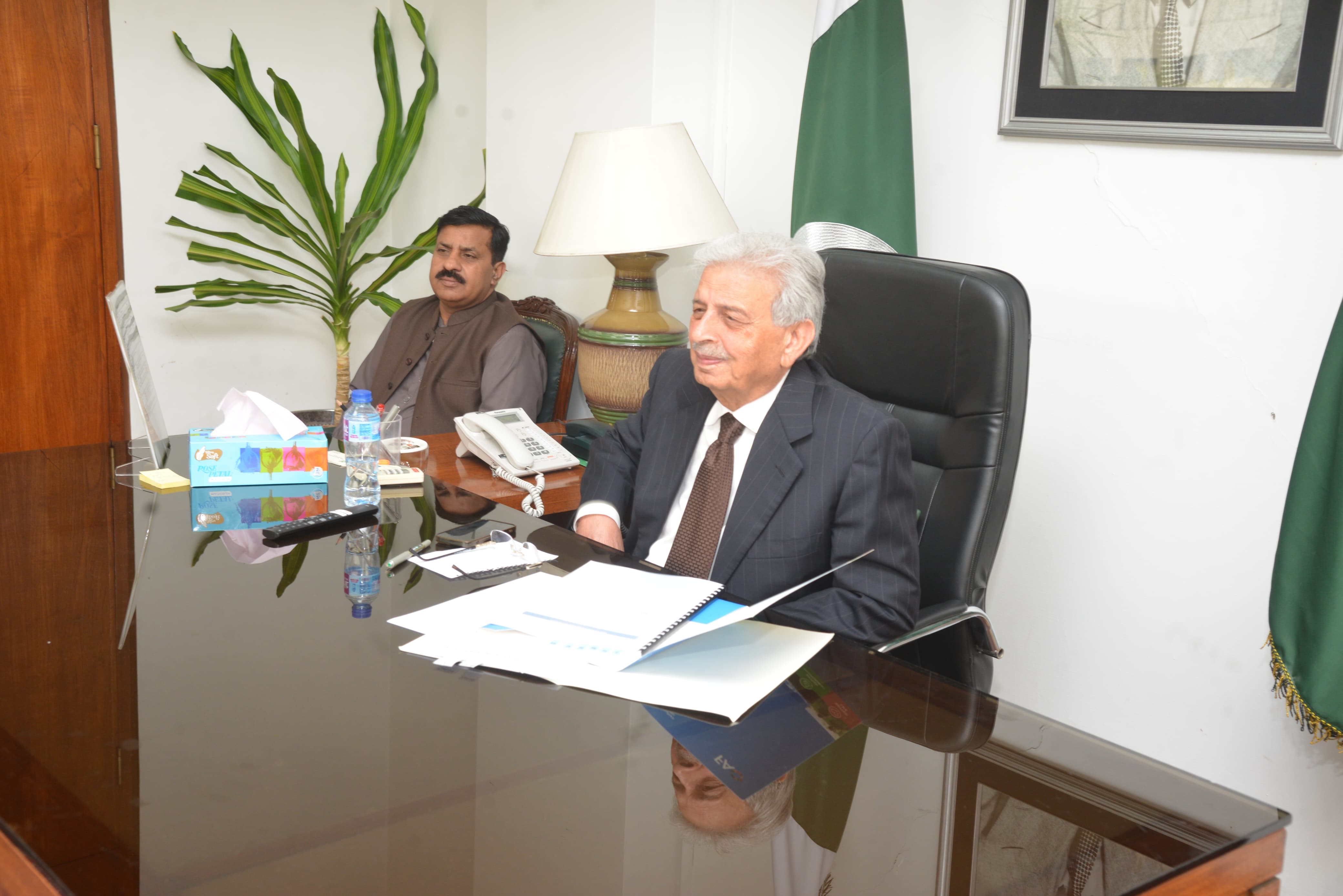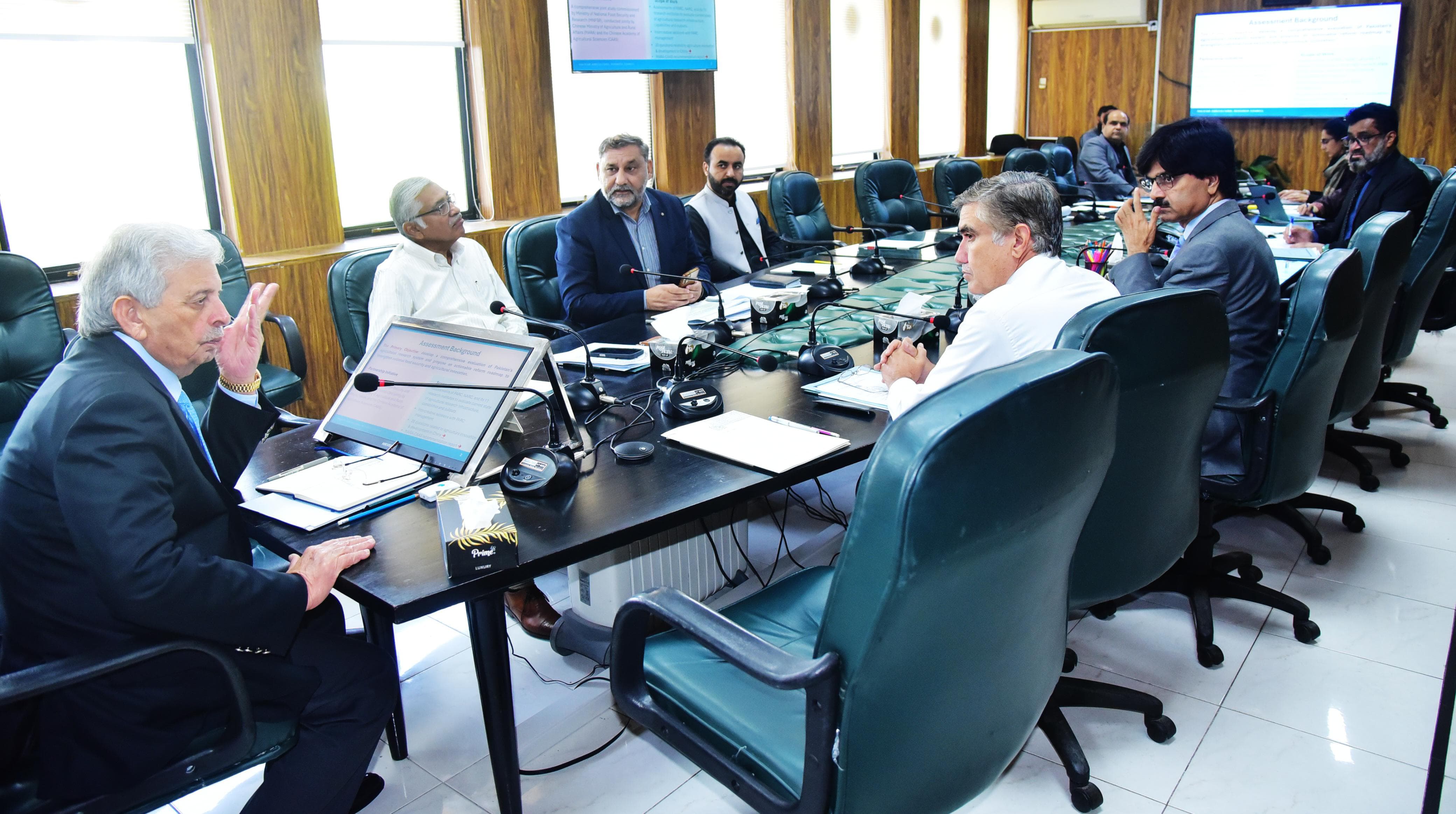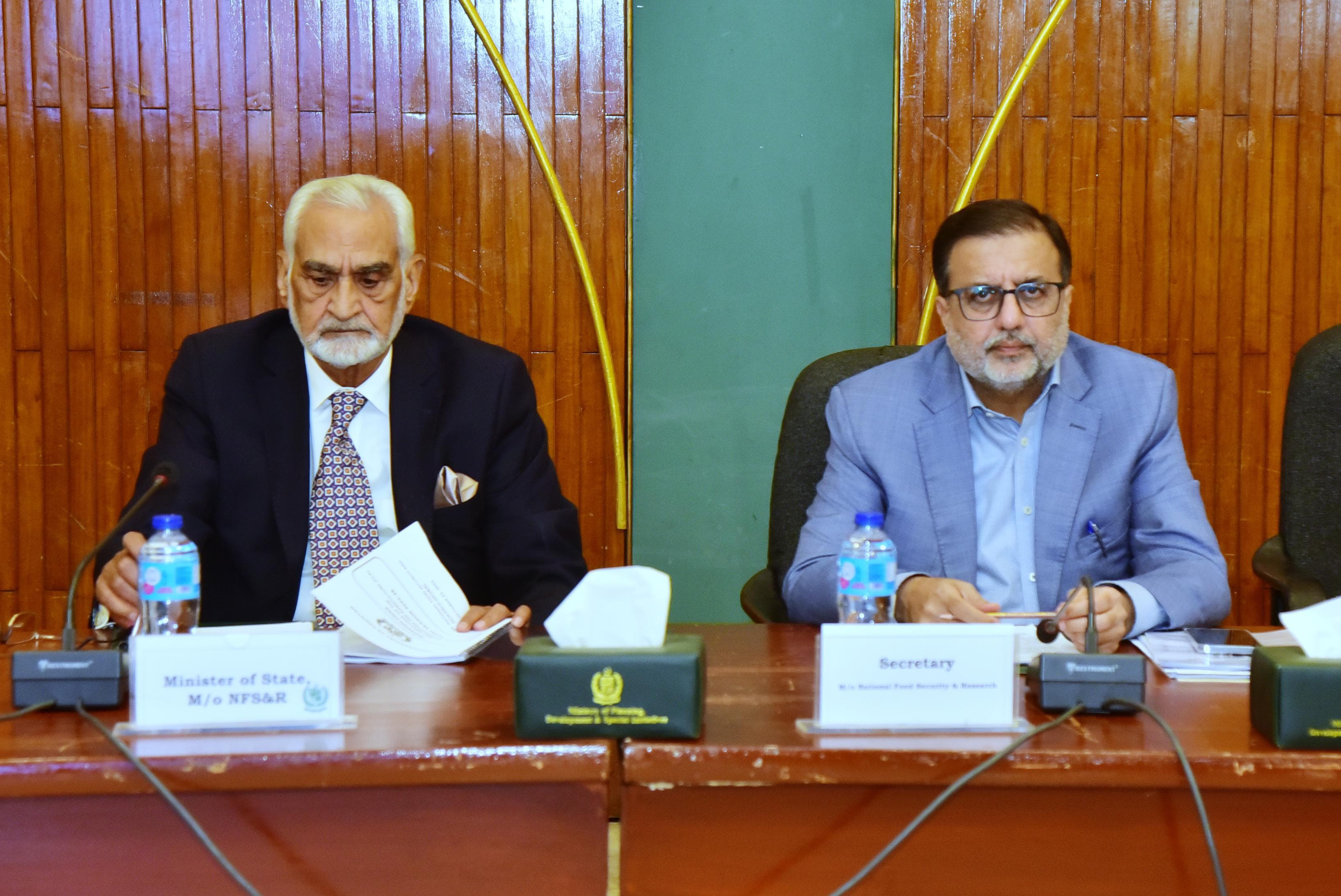 Federal Minister for National Food Security and Research, Rana Tanveer Hussain, chairs a high-level meeting with Chairman PARC, Dr. Syed Murtaza Hassan Andrabi, on the implementation of the Strategic Reform and Cooperation Plan for PARC.