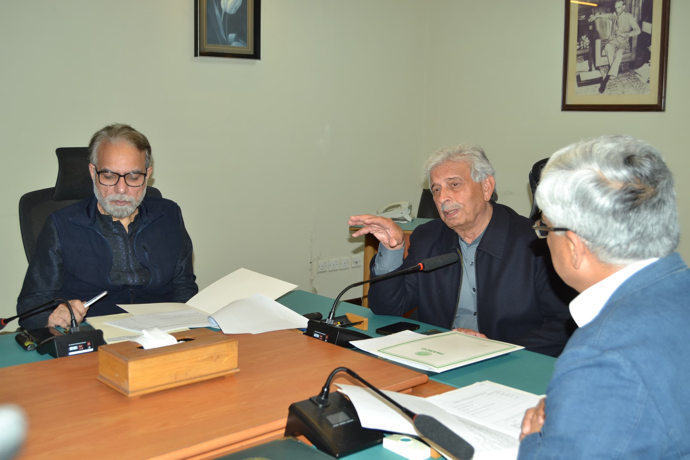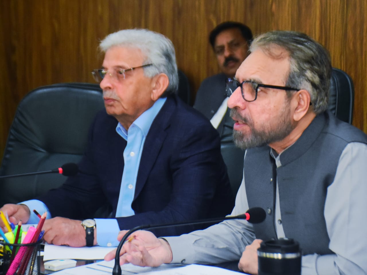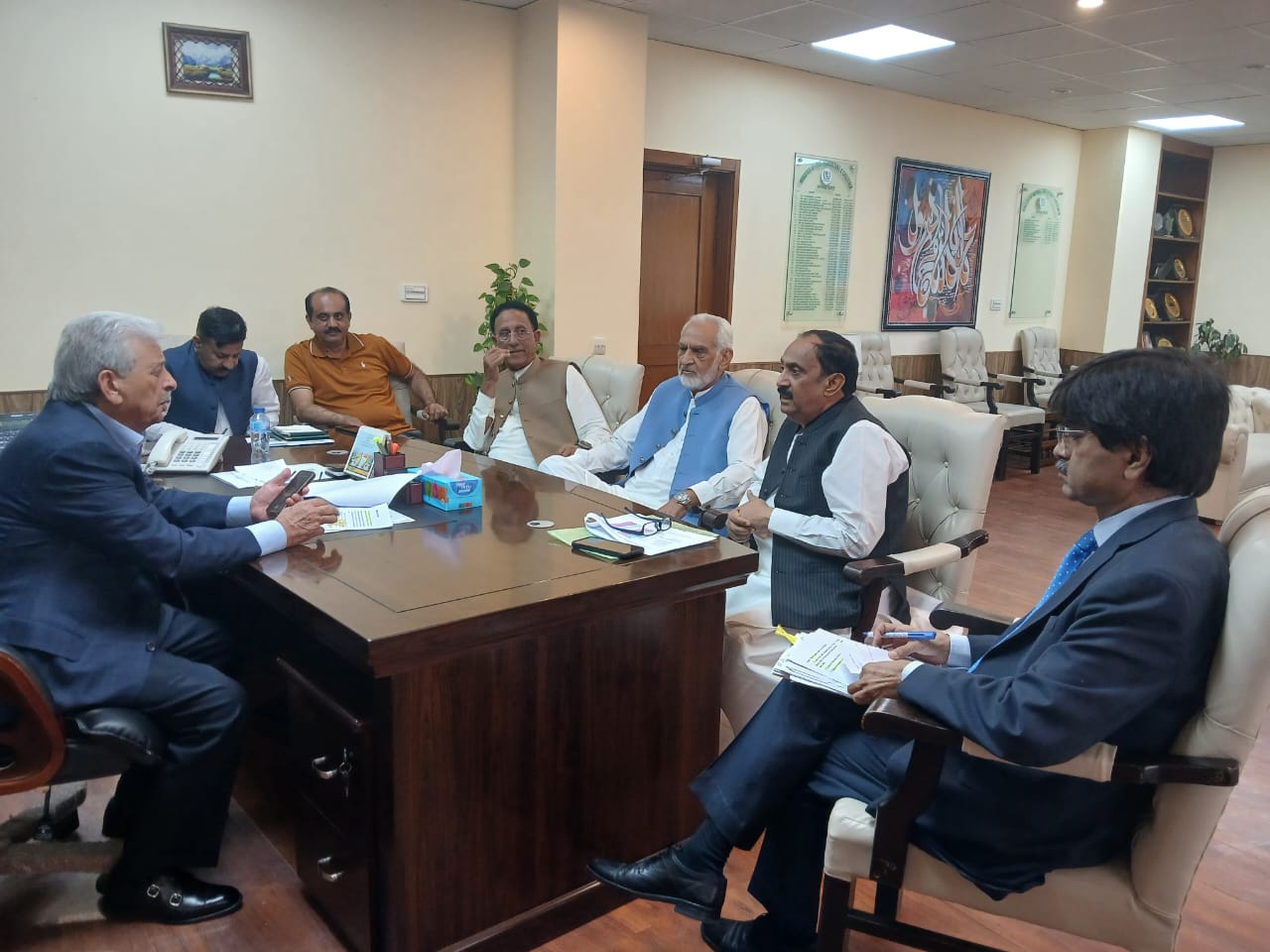 Federal Minister for National Food Security and Research, Rana Tanveer Hussain, chairs a high-level meeting with Chairman PARC, Dr. Syed Murtaza Hassan Andrabi, on the implementation of the Strategic Reform and Cooperation Plan for PARC.