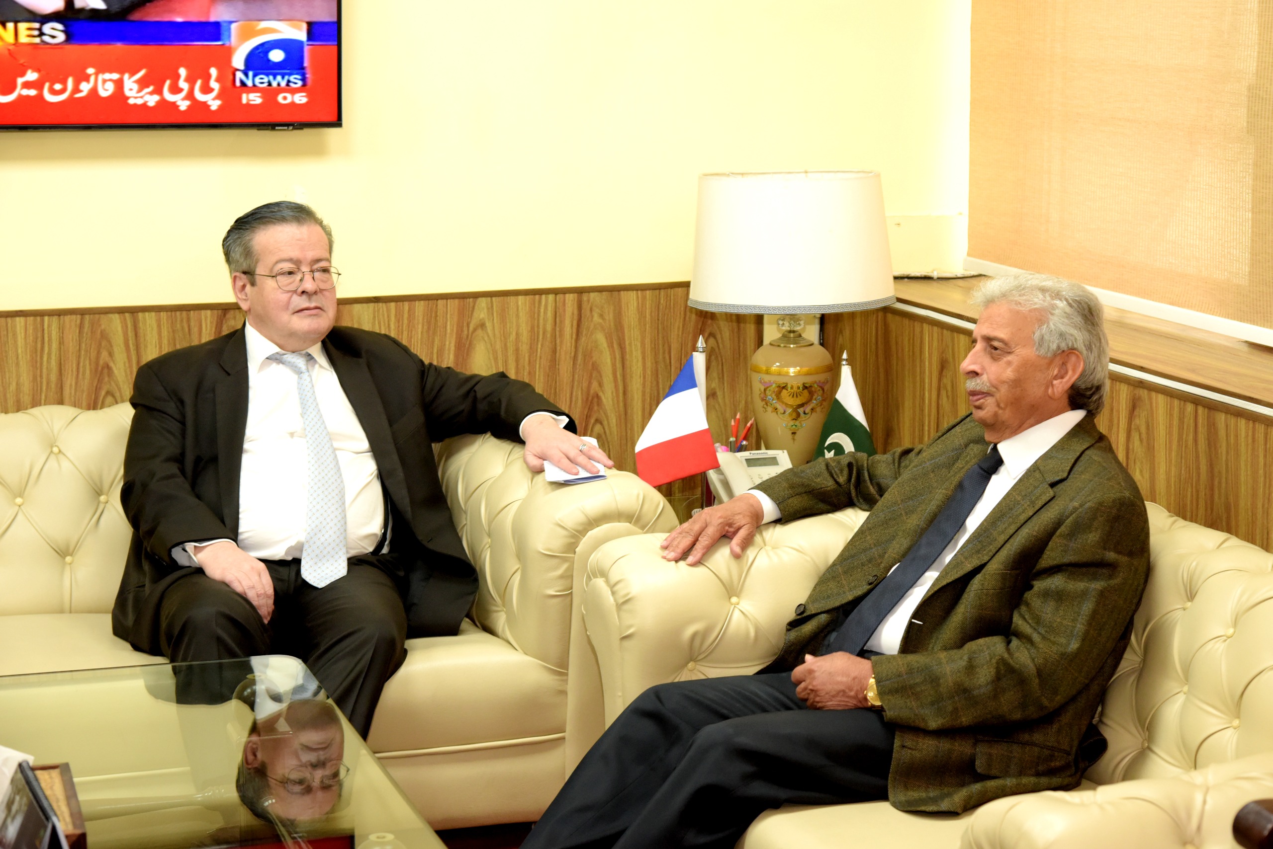 Islamabad, February 26, 2025 – Federal Minister Rana Tanveer Hussain meets the French Ambassador to discuss strengthening agricultural cooperation between Pakistan and France.