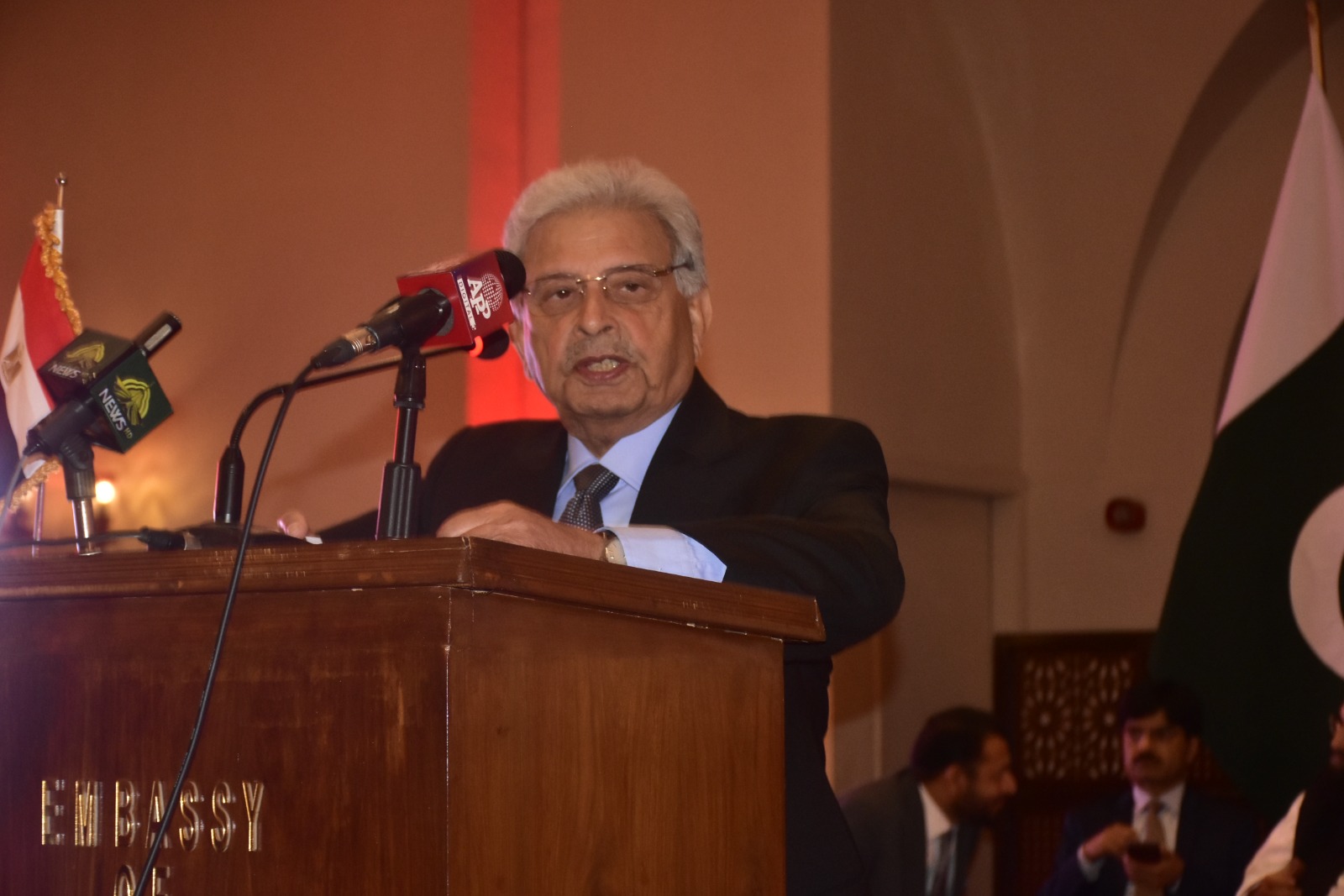 Federal Minister Rana Tanveer Hussain addresses the National Day ceremony of the Arab Republic of Egypt — July 3, 2025, Serena Hotel, Islamabad.