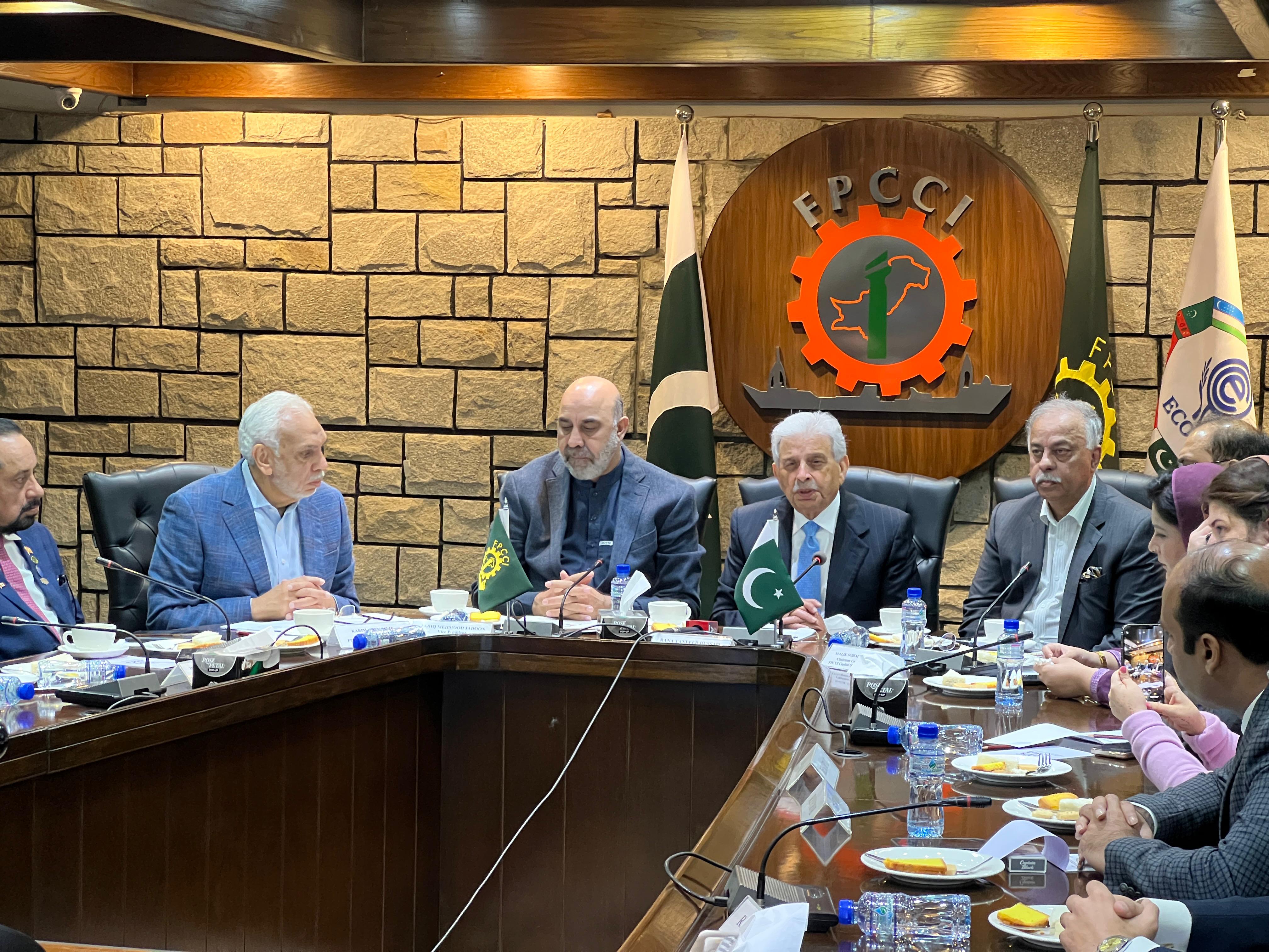 Federal Minister for National Food Security & Research Rana Tanveer Hussain chairs a high-level interactive meeting with agricultural exporters at the Federation of Pakistan Chambers of Commerce & Industry (FPCCI) to discuss measures for boosting agricultural exports.