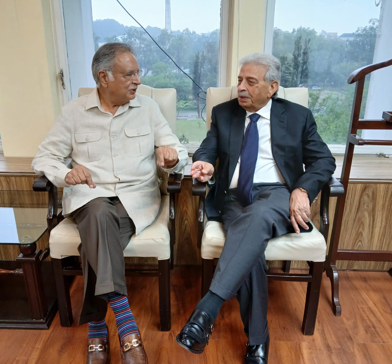 Federal Minister for National Food Security and Research, Rana Tanveer Hussain, meets Senator Pervaiz Rashid to discuss Pakistan-India tensions.