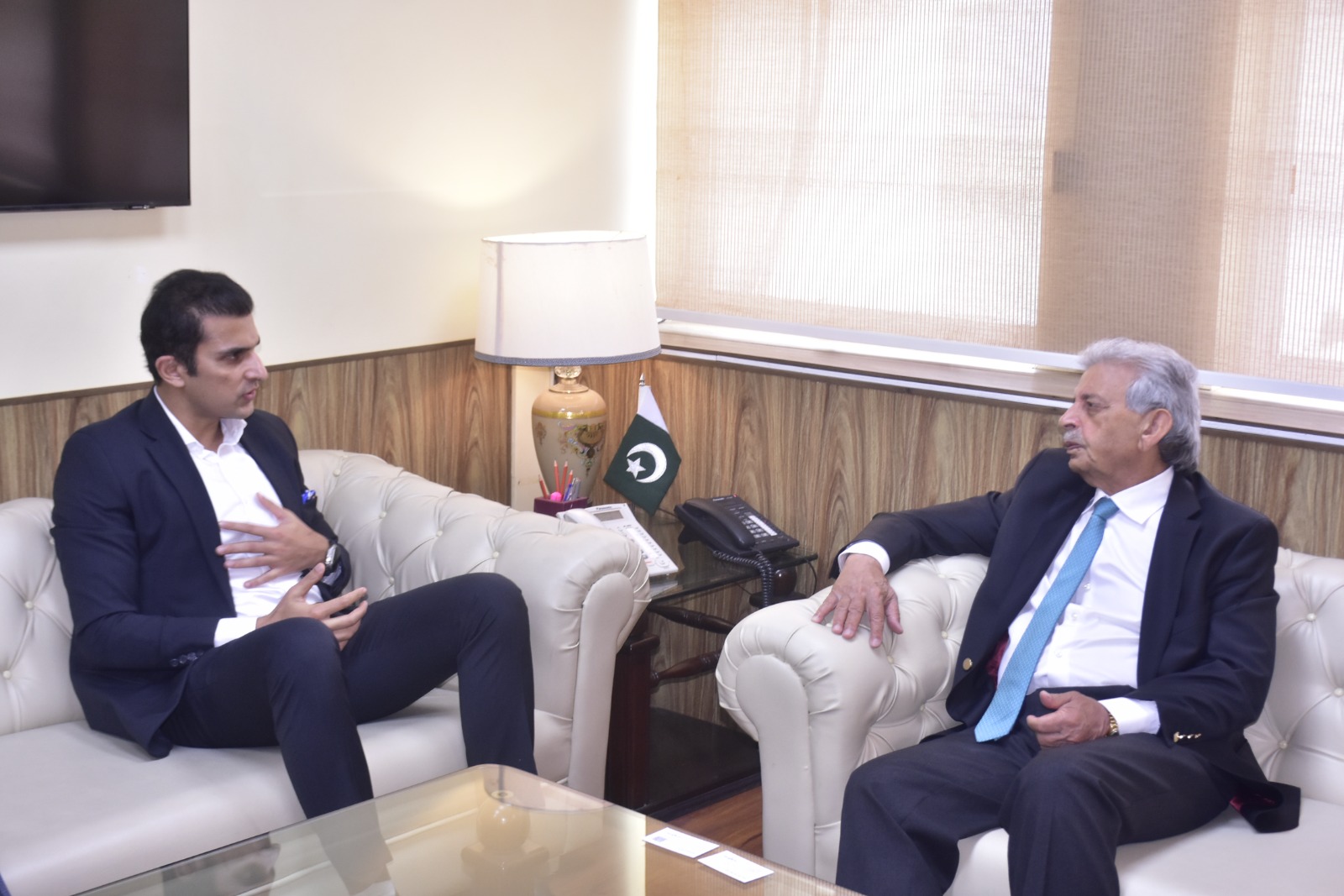 Federal Minister for National Food Security and Research Rana Tanveer Hussain meeting with ENGRO CEO Ali Rathore to discuss urea exports and gas supply