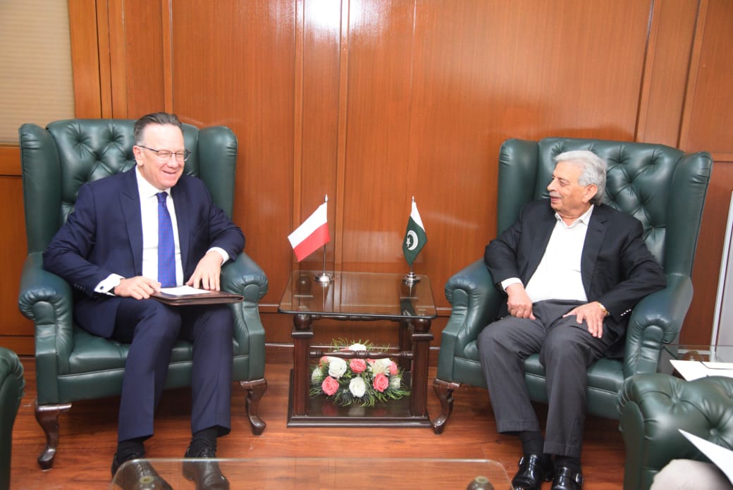 Federal Minister for National Food Security and Research, Rana Tanveer Hussain, meeting with the Ambassador of Poland to discuss strengthening agricultural cooperation and enhancing bilateral trade. Islamabad, September 18, 2025.