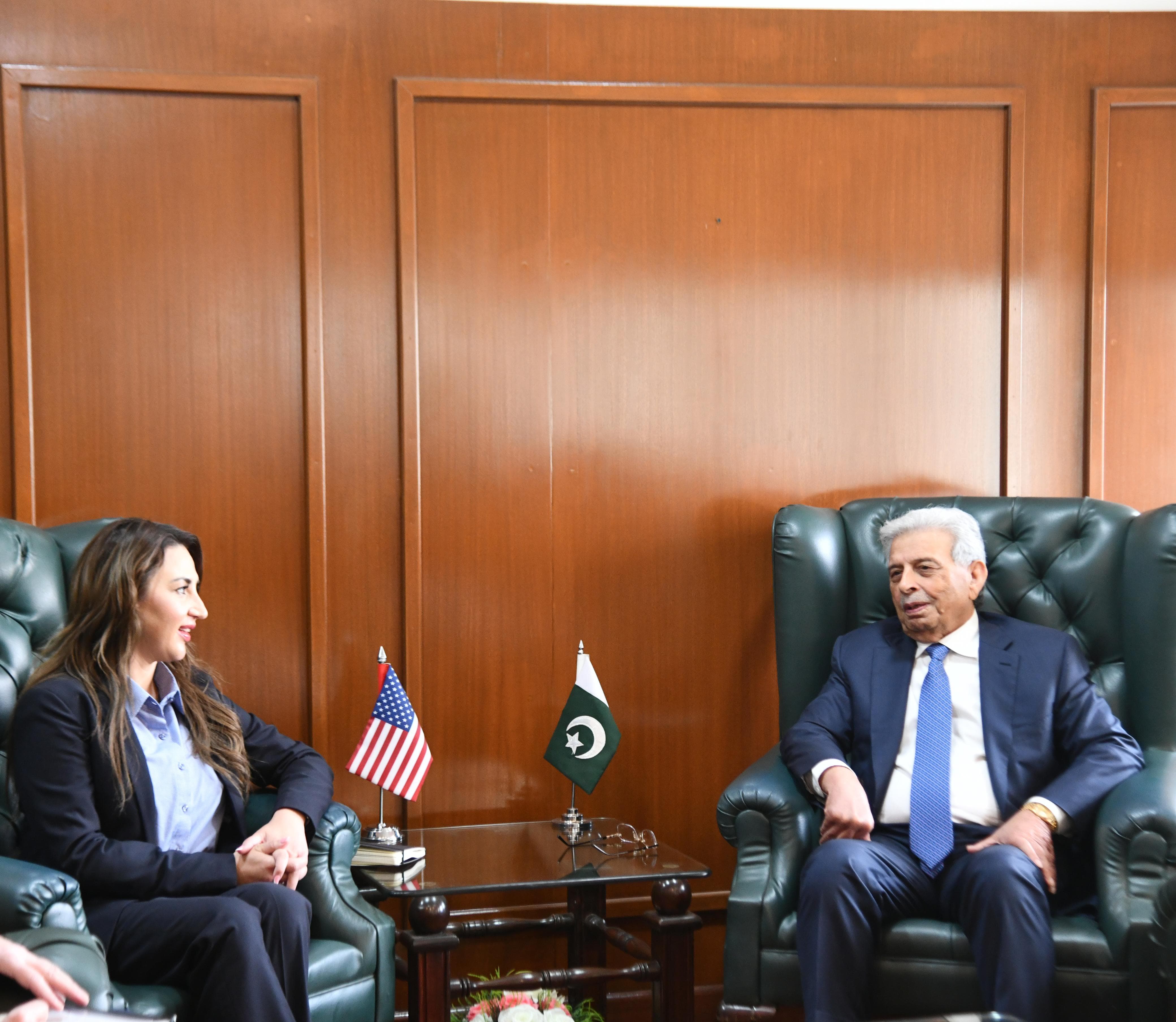Federal Minister for National Food Security and Research Rana Tanveer Hussain meeting with Acting U.S. Ambassador to Pakistan Natalie A. Baker to discuss enhanced Pak-U.S. agricultural cooperation — Islamabad, October 15, 2025.