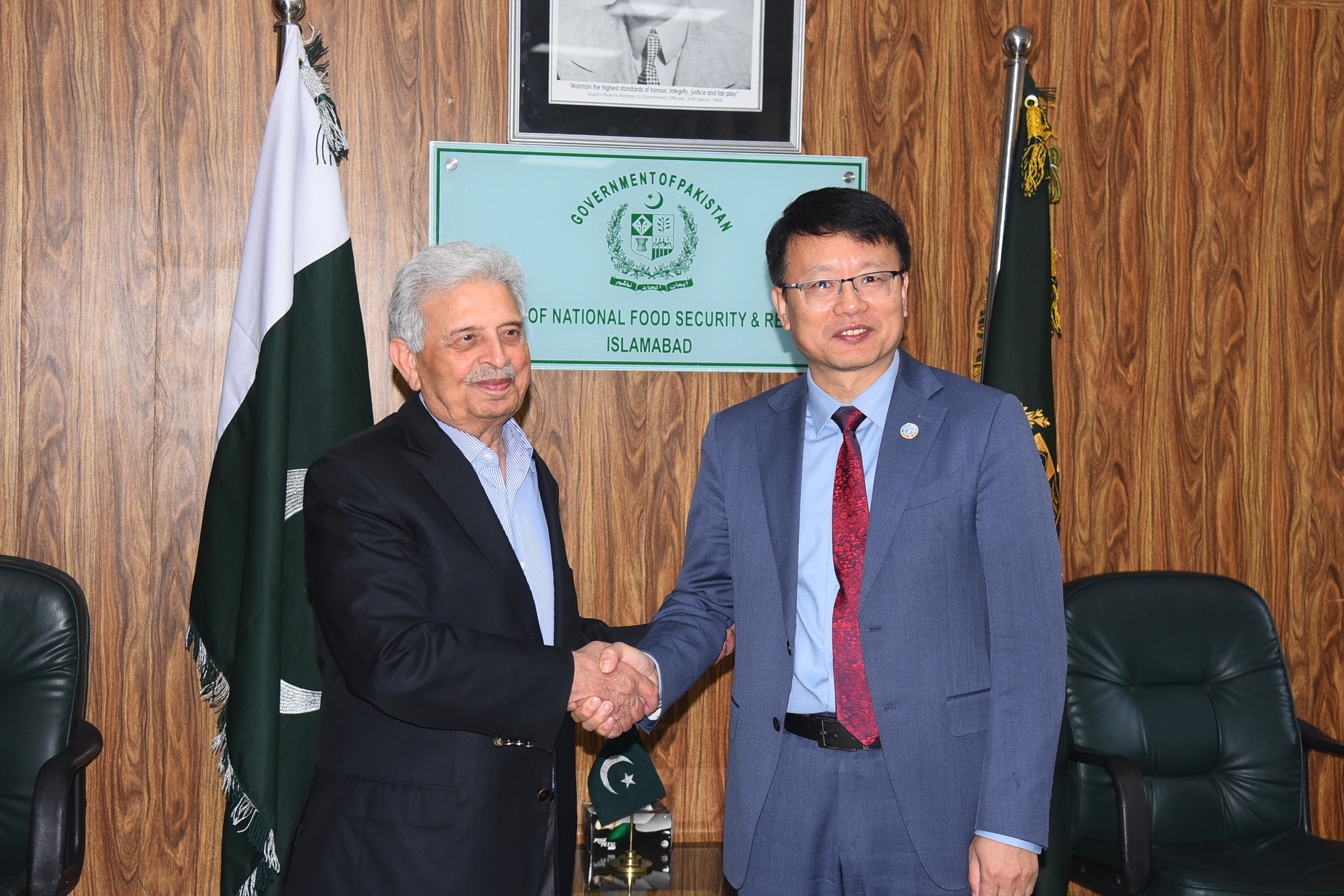 Federal Minister for National Food Security and Research, Rana Tanveer Hussain, met with Mr. Zaho Fei, Vice President of China’s Donkey Industry Branch, at his office in Islamabad.