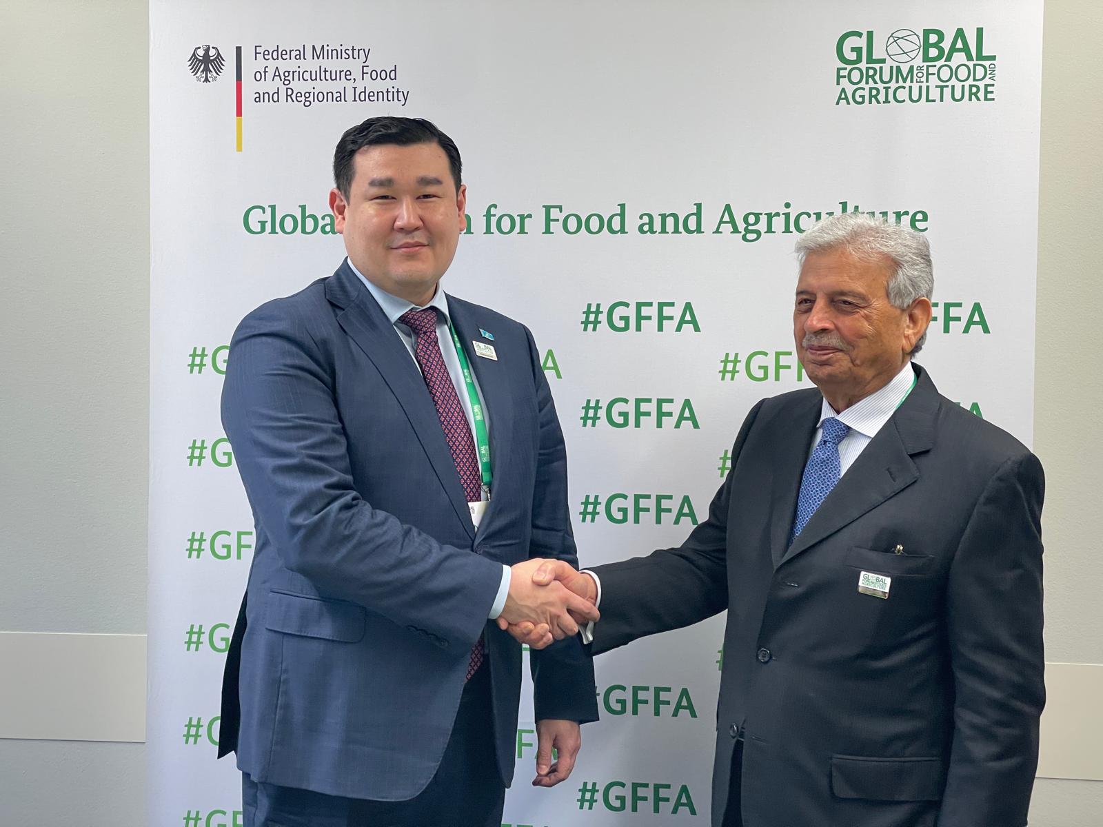 Federal Minister for National Food Security & Research Rana Tanveer Hussain meets Vice Minister for Agriculture of Kazakhstan Azat Sultanov on the sidelines of the Global Forum for Food and Agriculture (GFFA) 2026 in Berlin to discuss strengthening bilateral cooperation in agriculture and food security. (15 January 2026)
