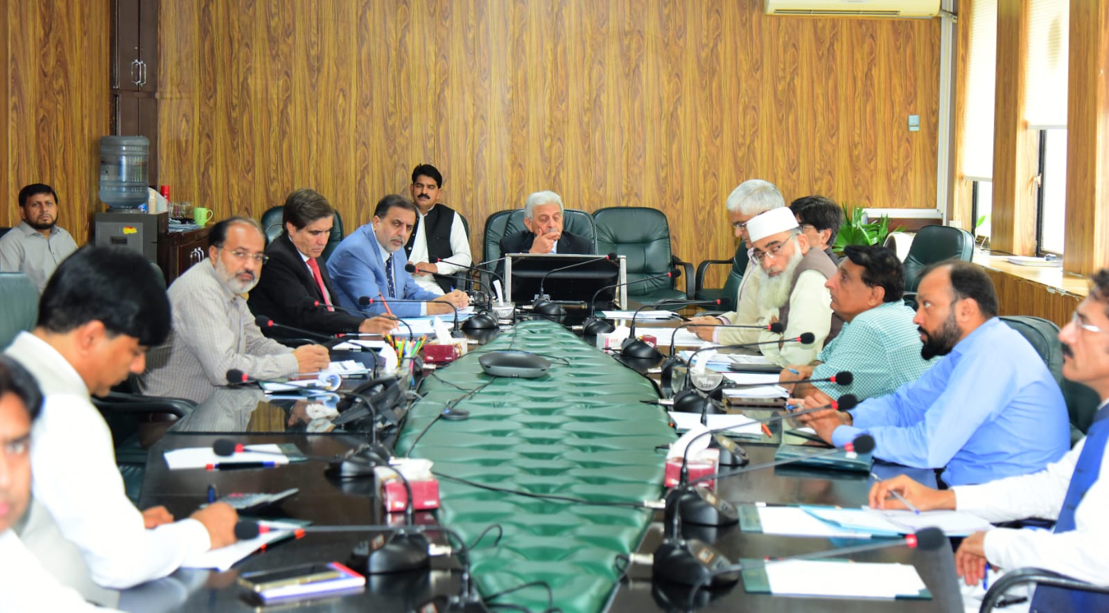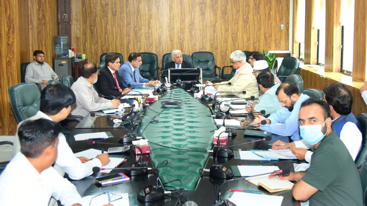Federal Minister for National Food Security and Research, Rana Tanveer Hussain, chairing the 8th Wheat Board meeting in Islamabad — August 28, 2025.”
